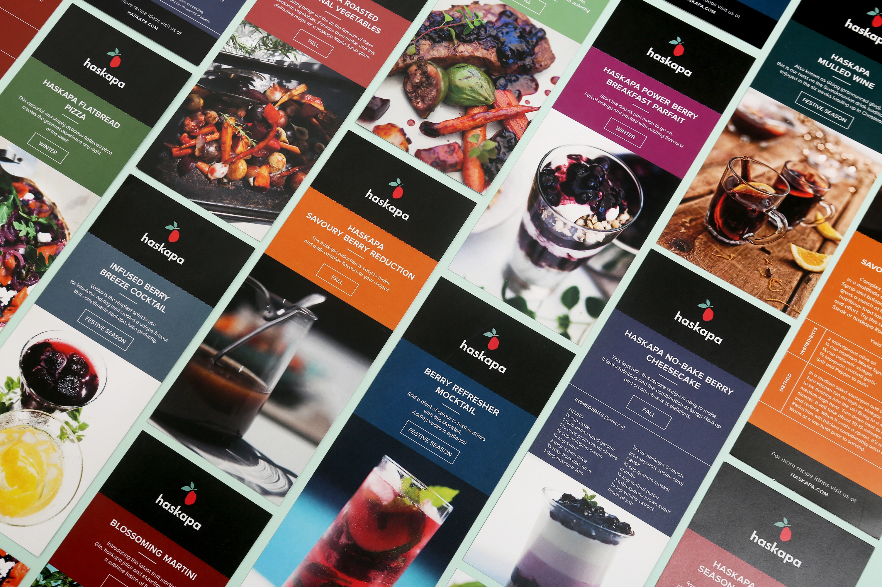 The initial Canadian launch of the Haskapa project encompassed branding application and design across an extensive list of marketing materials and in-house collateral. A clean, simple design system was applied across a diverse range of products. Shelf impact was achieved with the use of special colours and tactile, colourful food prints commissioned from Zagreb-based illustrator Ana Zaja Petrak.